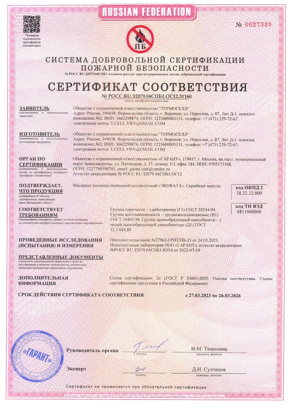 Свойства утеплителя, его безопасность и характеристики соответствуют всем современным требованиям российских стандартов и норм