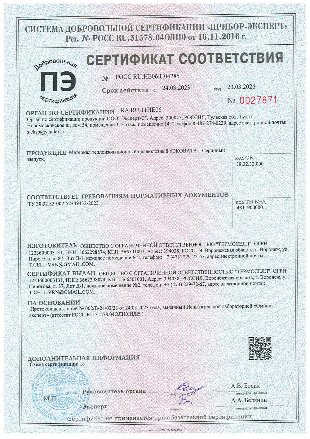 Компоненты эковаты являются нетоксичными, нелетучими, безвредными для человека природными компонентами